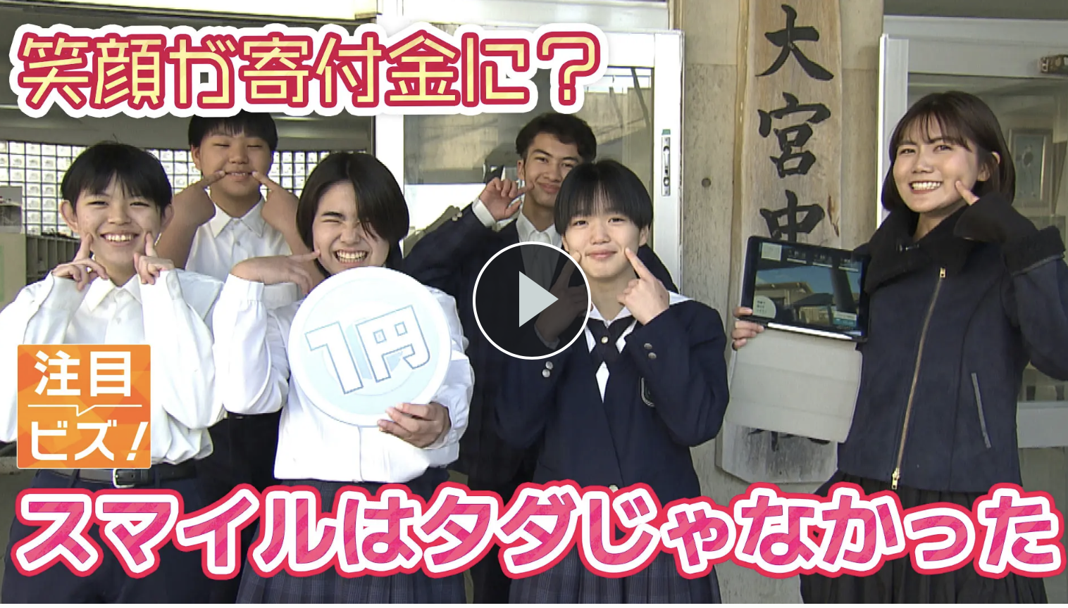 沖縄県名護市立大宮中学校の生徒たちによる「笑顔を寄付に変える」活動が、QAB(琉球朝日放送)の番組「ビジネスキャッチャー」で紹介されました。